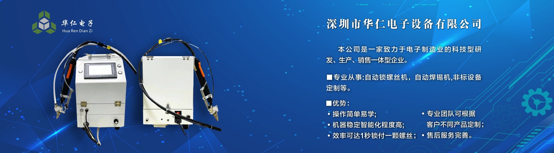 深圳市華仁電子設備有限公司是一家致力于電子制造業(yè)周邊設備的科技型研發(fā)、生產、銷售一體的企業(yè),專業(yè)從事:自動鎖螺絲機;自動焊錫機;非標設備定制機等,公司長期以來在行業(yè)中積累了豐富的經驗,擁有專業(yè)的研發(fā)、技術、銷售支持工程團隊、各高級技術人才為客戶提供優(yōu)質產品和服務,同時不斷吸取國內外先進技術,更準確及時地為客戶提供優(yōu)質,性價比高的產品、公司以專業(yè)的售前、售中、售后服務贏得了客戶的信賴和好評,為客戶提供先進自動化設備一體式解決方案、